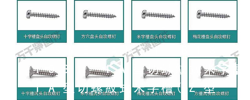 ASME B1.3M-1992(R2001) 螺紋尺寸驗收的檢測體系—英寸和米制螺紋(UN、UNR、UNJ、M和MJ)ASME B1.5-1997 愛克母(ACME)螺紋 ASME B1.8-1988(R1994) 矮牙愛克母螺紋 ASME B107.46-1998 螺柱、螺釘和管道提取 不同點:1、自攻螺釘的螺絲一般為機螺紋,而 自擠螺釘采用自攻螺紋。2、在扳擰方式中, 自擠為確保高速自動采用了裝配扳手,而自攻螺釘采用開槽。螺釘型號如下:(1)十字槽盤頭自攻螺釘:GB/T6560,ASME B18.6.4,SAE